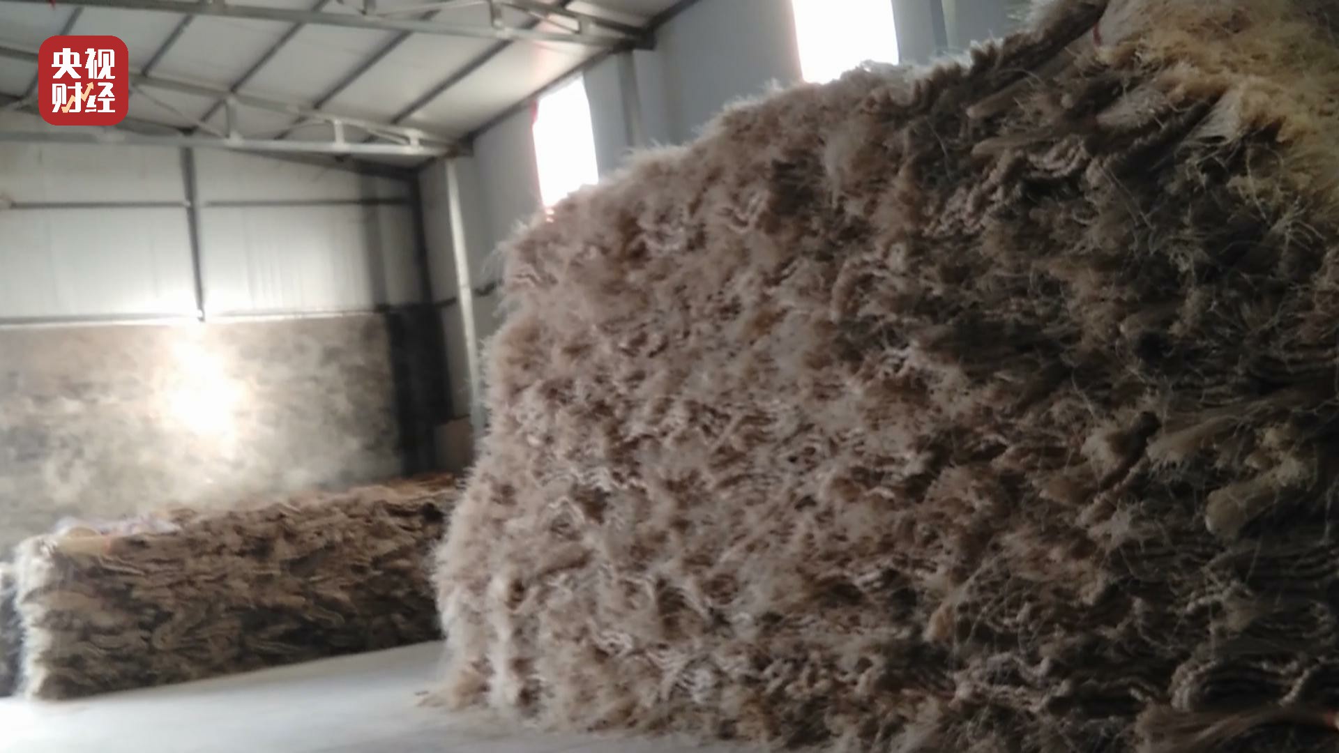 走進(jìn)一個倉庫,密密麻麻的粉條直接堆放在地上。