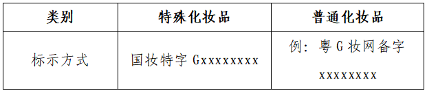 “國妝特字Gxxxxxxxx”屬于特殊化妝品;“粵G妝網備字xxxxxxxx”屬于普通化妝品。“粵”代表廣東省簡稱,不同的省份用不同的簡稱;“xxxxxxxx”后8位數字的前4位代表批準文號的年份,后4位代表流水號。