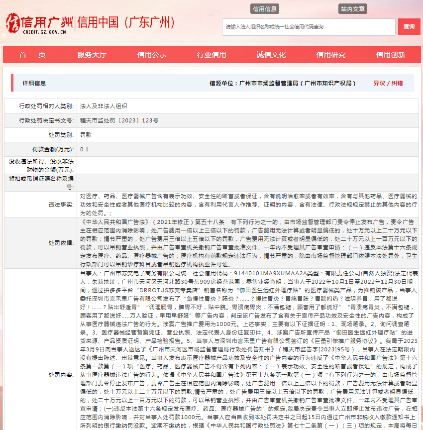 中國質(zhì)量新聞網(wǎng)訊 據(jù)信用中國(廣東廣州)網(wǎng)站消息,近日,廣州市天河區(qū)市場監(jiān)督管理局對廣州市蘇奕電子商務(wù)有限公司作出行政處罰。行政處罰決定書文號:穗天市監(jiān)處罰〔2023〕123號。