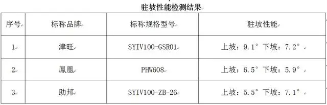 3輛輪椅車駐坡性能項目低于8°