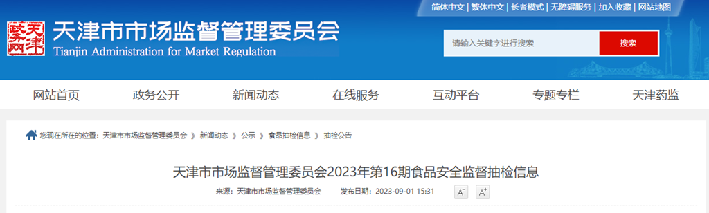 中國質量新聞網訊 2023年9月1日,天津市市場監督管理委員會網站發布2023年第16期食品安全監督抽檢信息。本次監督抽檢信息涉及7大類食品,包括:調味品、糕點、薯類和膨化食品、速凍食品、糖果制品、餐飲食品和炒貨食品及堅果制品,共計580批次,其中合格578批次,不合格2批次,本次抽檢合格率99.66%。