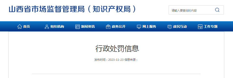 中國質量新聞網訊 近日,山西省市場監督管理局發布行政處罰信息(晉市監價監罰字【2023】17號)。