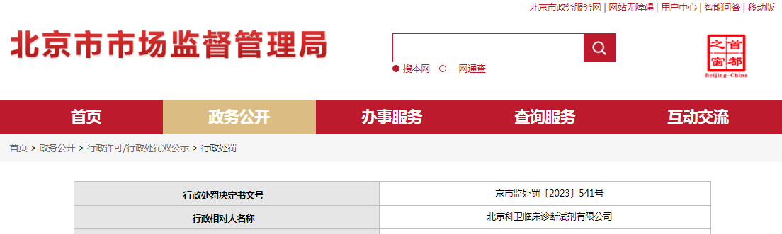 | 行政相對人名稱 | 北京科衛臨床診斷試劑有限公司 | |