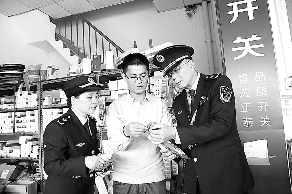 近日,廣西壯族自治區南寧市西鄉塘區市場監管局對五金店開展專項檢查。圖為執法人員對轄區一家五金電器門店所售開關、插板等進行檢查。 何正君 攝