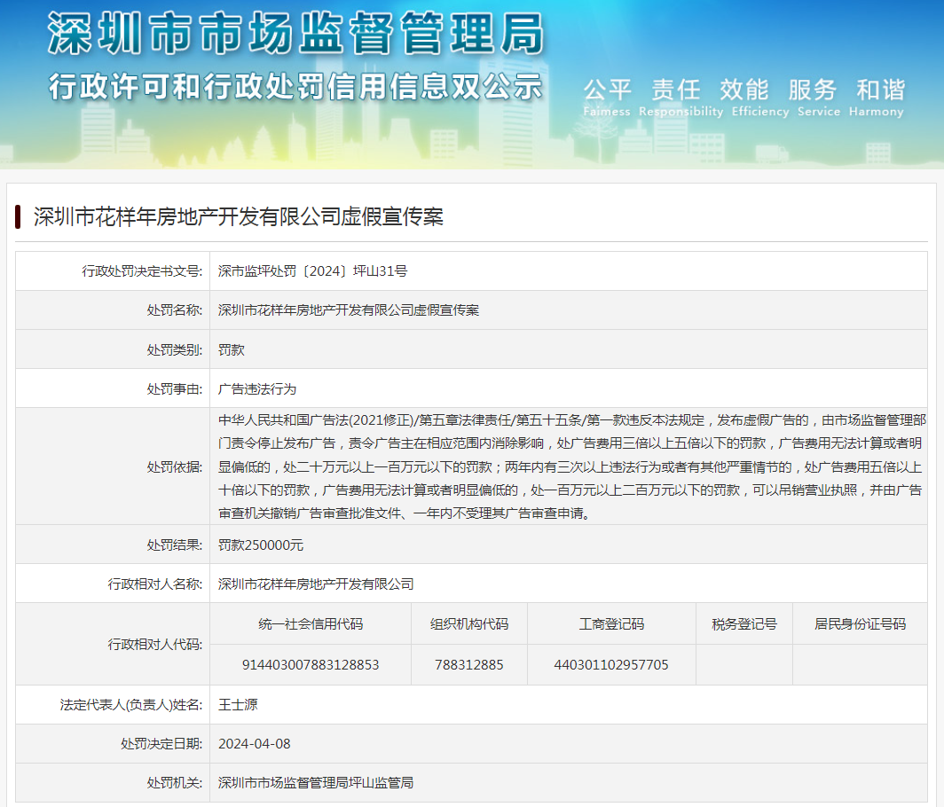 深圳市花樣年房地產開發有限公司虛假宣傳案