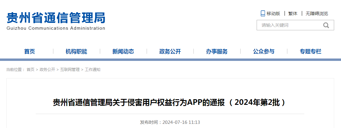 貴州省通信管理局關(guān)于侵害用戶權(quán)益行為APP的通報(bào)(2024年第2批)