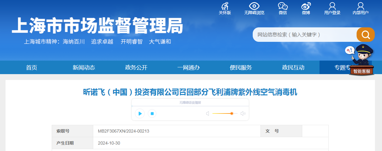 召回負責機構 | 昕諾飛(中國)投資有限公司 | |||