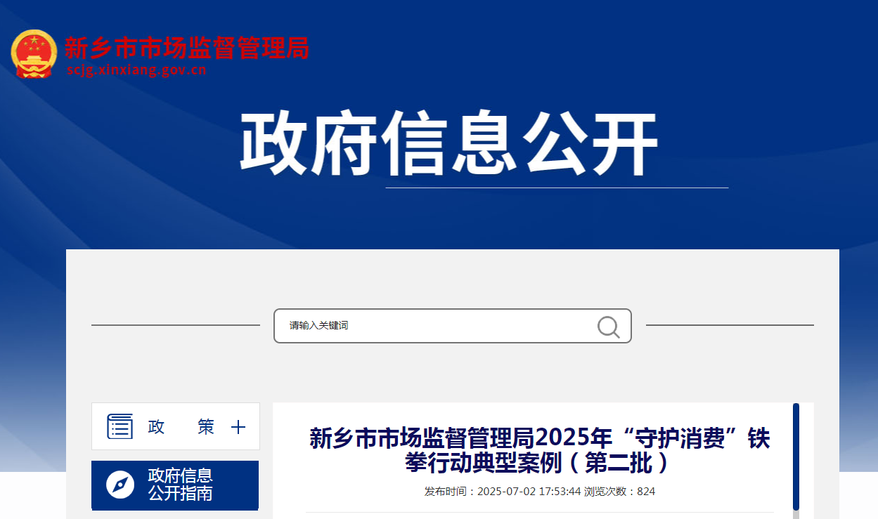 新鄉(xiāng)市市場(chǎng)監(jiān)督管理局2025年“守護(hù)消費(fèi)”鐵拳行動(dòng)典型案例(第二批)