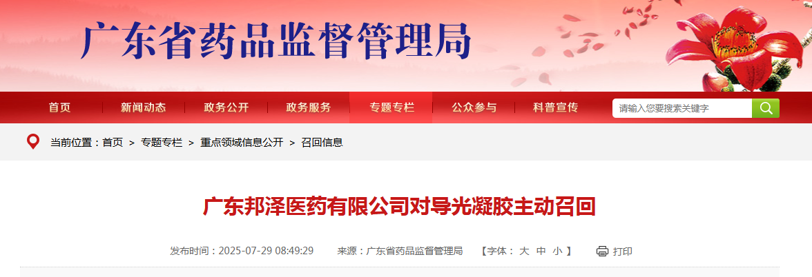 廣東邦澤醫(yī)藥有限公司生產(chǎn)的導(dǎo)光凝膠,生產(chǎn)批號(hào)見(jiàn)附件,因說(shuō)產(chǎn)品標(biāo)簽、說(shuō)明書上的適用范圍與備案內(nèi)容不一致,決定對(duì)售出產(chǎn)品實(shí)施召回,召回級(jí)別為三級(jí)。
