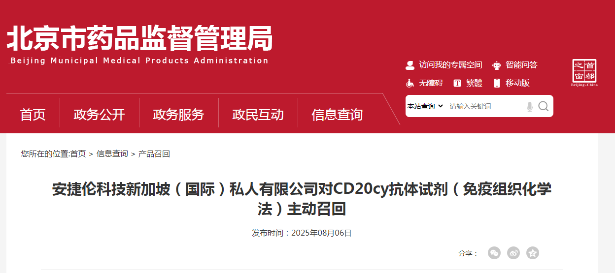 安捷倫科技(中國)有限公司報告,由于在使用CD20cy抗體試劑(GA604)對若干例慢性淋巴細胞白血病/小淋巴細胞淋巴瘤(CLL/SLL)組織樣本進行染色的過程中,發現CD20 免疫組織化學染色弱的情況。在全球范圍內收到若干例客戶投訴,反饋用戶在診斷過程中發現染色弱的情況。染色弱可能會對病理醫生的評估產生影響,生成潛在的錯誤診斷結果,進而有較低風險導致淋巴瘤的漏診或誤診情況。盡管在多數病例中并未發現此情況,不一致的染色仍會降低診斷的準確性。作為預警措施,特啟動此召回。該較低的風險仍可通過一些方式進行緩解,包括采納標準化的診療方案和說明書中對于臨床醫生需參考多種來源的信息的要求,不僅是CD20免疫組化,也包括臨床發現、顯微鏡下的組織形態、其他免疫組織化學標記物、以及在其他測試平臺對診斷實施過程中收集到的樣本(例如骨髓和血液)進行附加檢測。安捷倫科技新加坡(國際)私人有限公司對其生產的CD20cy抗體試劑(免疫組織化學法)(注冊或備案號:國械注進20193400060 )主動召回。召回級別為二級。涉及產品的型號、規格及批次等詳細信息見《醫療器械召回事件報告表》。