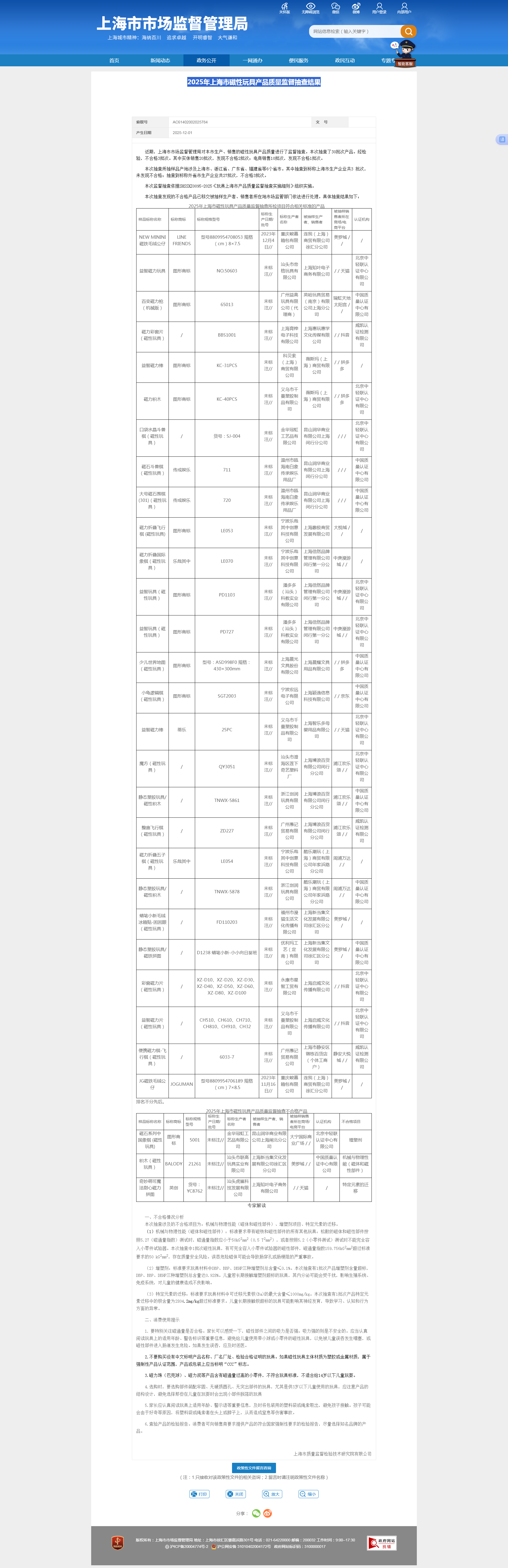 2025年上海市磁性玩具產品質量監督抽查所檢項目符合相關標準的產品