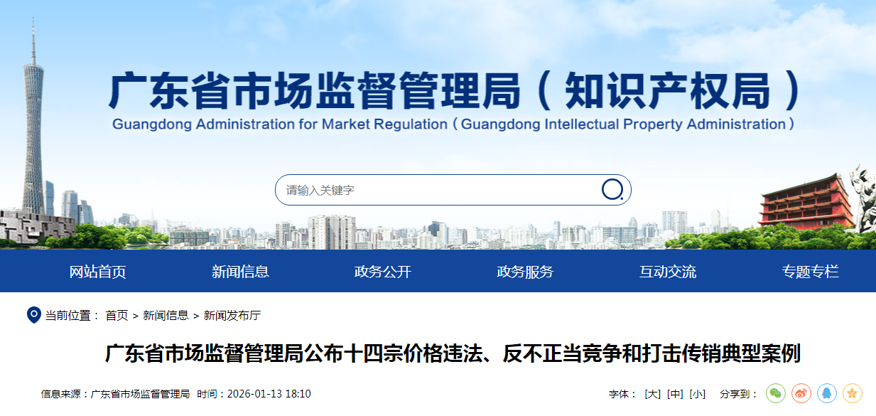 廣東省市場監督管理局公布十四宗價格違法、反不正當競爭和打擊傳銷典型案例