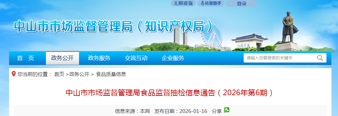 中山市市場(chǎng)監(jiān)督管理局食品監(jiān)督抽檢信息通告(2026年第6期)