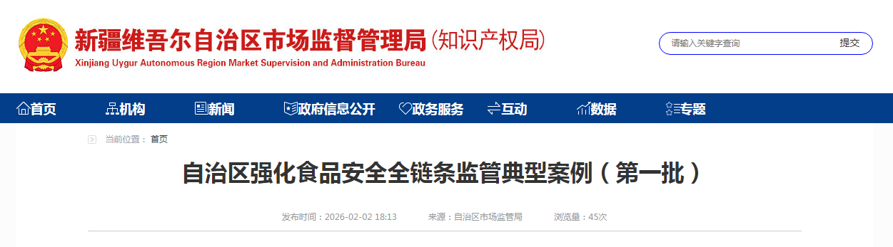 自治區強化食品安全全鏈條監管典型案例(第一批)