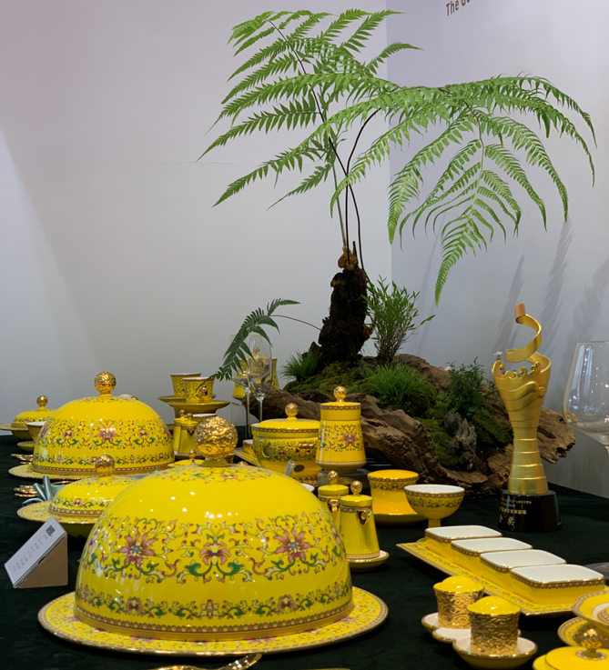 秉承美食美器融美境,《春滿園》重在展現中華民族復興的發展理念,黃色在古代是皇室尊貴之色,有著中國禮儀之邦的深厚底蘊,同時汲取了漢唐文化的博大精深和深厚文化底蘊,從精湛金銀器工藝中獲得造型靈感。《春滿園》系列瓷藝作品,還采用了斯達高國瓷品質SGIA(國際網印大賽陶瓷類金獎)裝飾工藝,借鑒漢唐裝飾藝術中最美的纏枝蓮紋圖案,璀璨生輝、生機盎然。