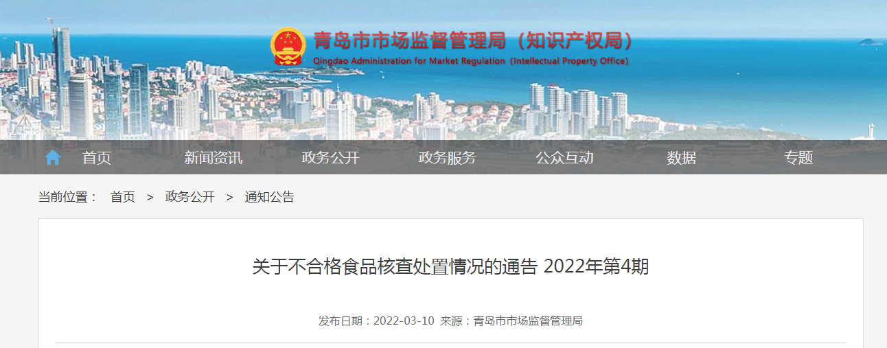 中國質量新聞網訊 3月10日,山東省青島市市場監督管理局網站發布關于不合格食品核查處置情況的通告(2022年第4期),涉及城陽區趙以光水果經營部(趙以光)經營的香蕉。