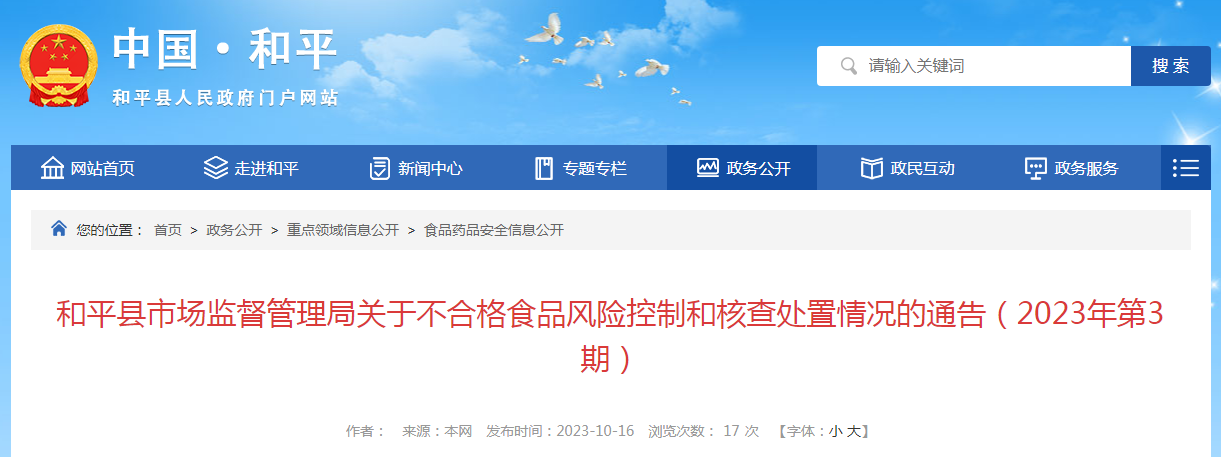 和平縣市場監(jiān)督管理局關(guān)于不合格食品風(fēng)險控制和核查處置情況的通告(2023年第3期)