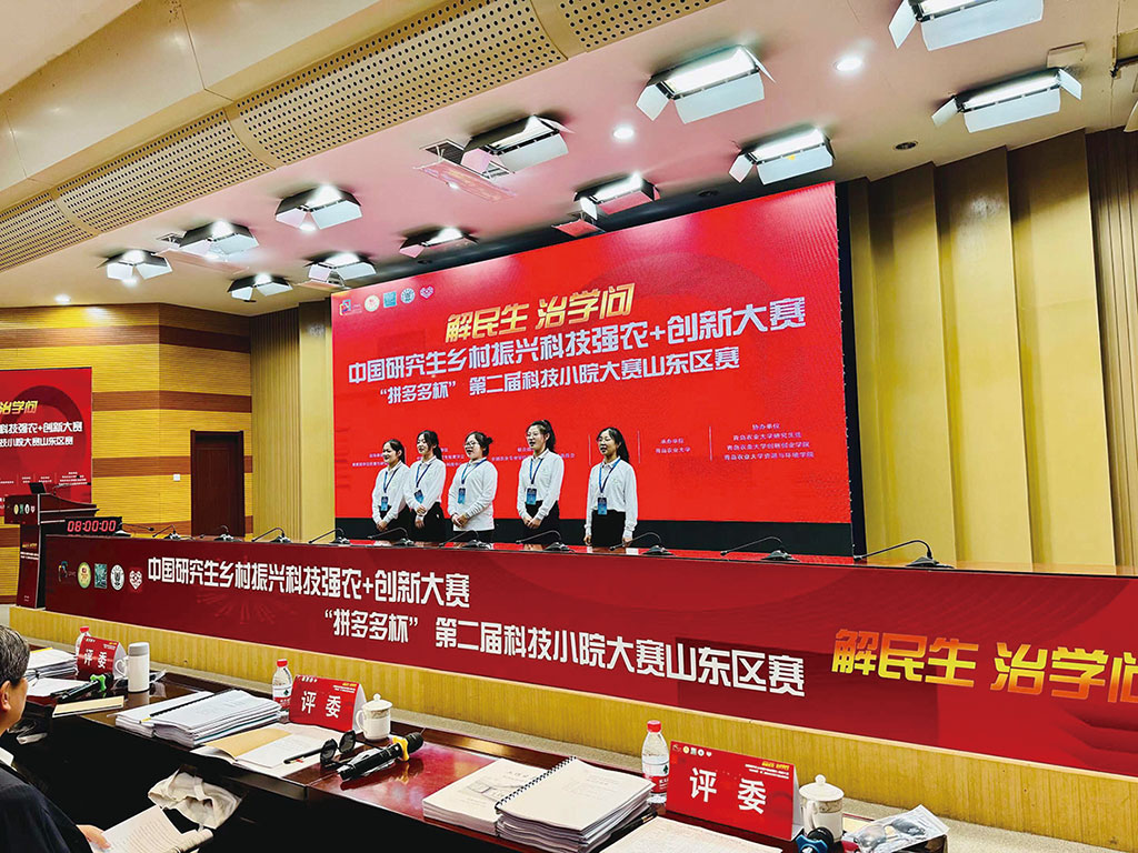通過現場路演答辯+線下成果展示,青島農業大學“小院青年 筑夢田野”隊(項目名稱:小院定制專屬技術 “天地空”助力糧食綠色增產)、蘿里蘿棄團隊(項目名稱:“尾菜為寶”,點亮美好家園)和中國農業大學甜葉菊小分隊(項目名稱:糧變經,天然糖,更健康,曲周縣甜葉菊產業全鏈條升級)最終獲得該賽區一等獎。