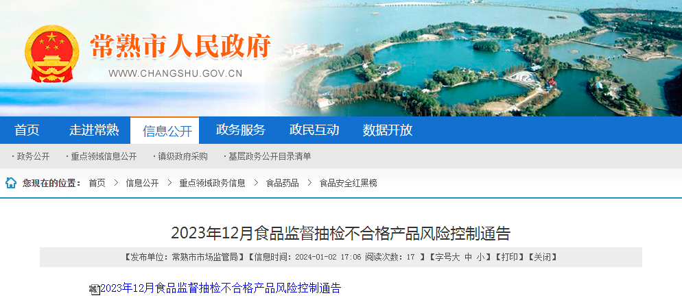 | 常熟市市場監(jiān)督管理局不合格食品風險控制情況通告 | ||||||||