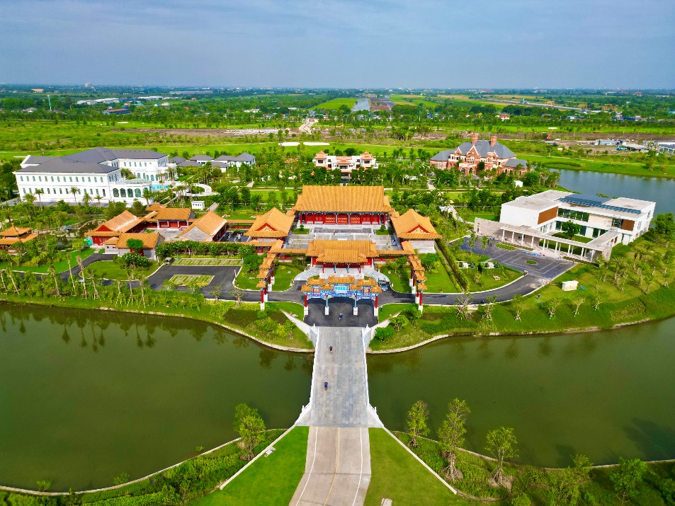 2023年5月18日,由清華大學(xué)國(guó)家遺產(chǎn)中心主任呂舟教授團(tuán)隊(duì)擔(dān)任設(shè)計(jì),近300名國(guó)內(nèi)外工人協(xié)助建設(shè)的華彬東西方文化交流中心在曼谷的華彬東盟健康產(chǎn)業(yè)園落成并對(duì)外開放。