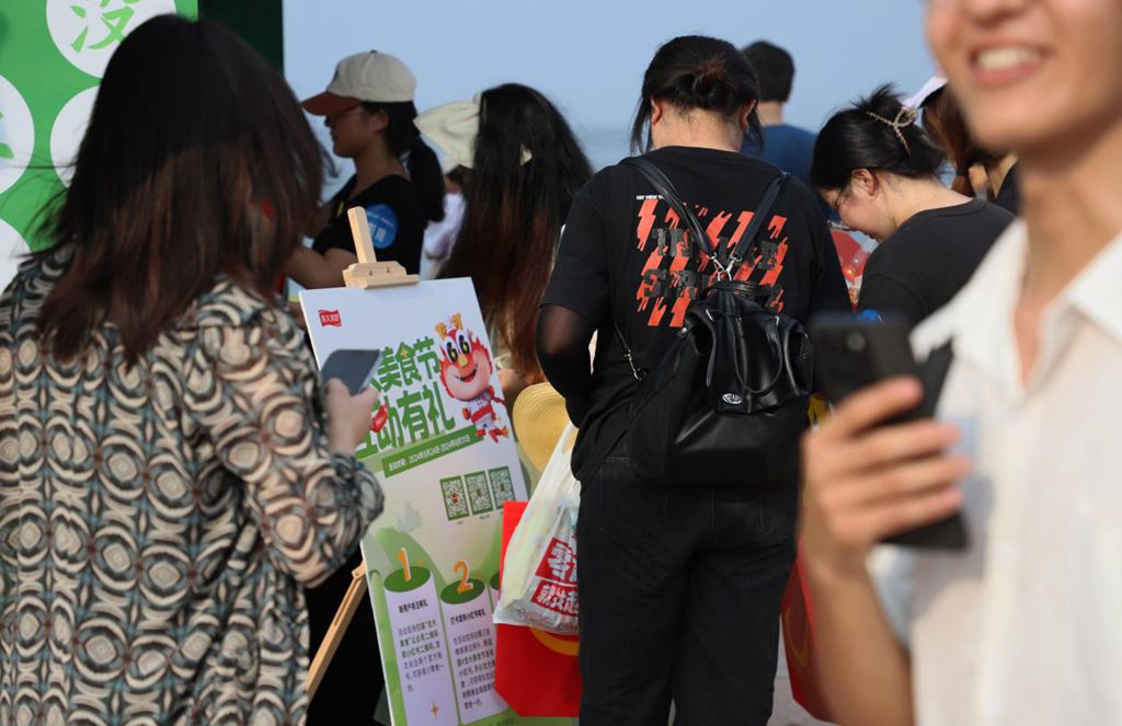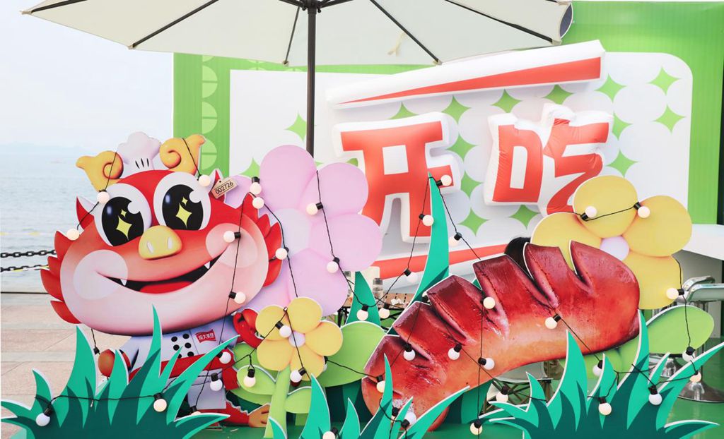“龍大美食節(jié)”在48平米品牌展區(qū)內(nèi)如火如荼地開展。展區(qū)背靠大海,以活力綠色作為主色調(diào),不僅有美食售賣區(qū),還設(shè)置了創(chuàng)意打卡區(qū)和休閑區(qū),展區(qū)前人頭攢動,很多觀眾興致盎然,在美食與海景的交相映襯下享受生活的恣意。