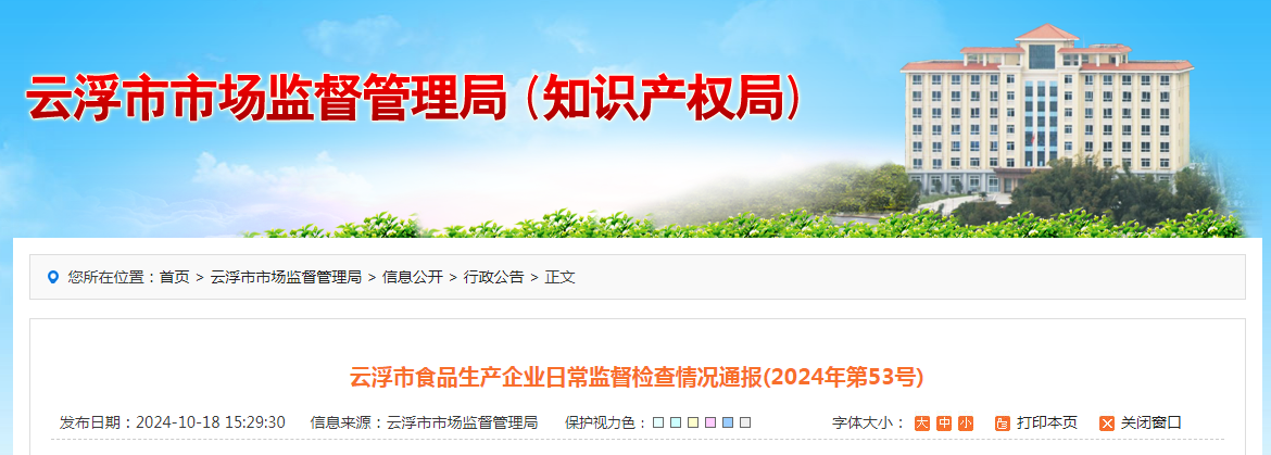 云浮市食品生產(chǎn)企業(yè)日常監(jiān)督檢查情況通報(bào)(2024年第53號(hào))
