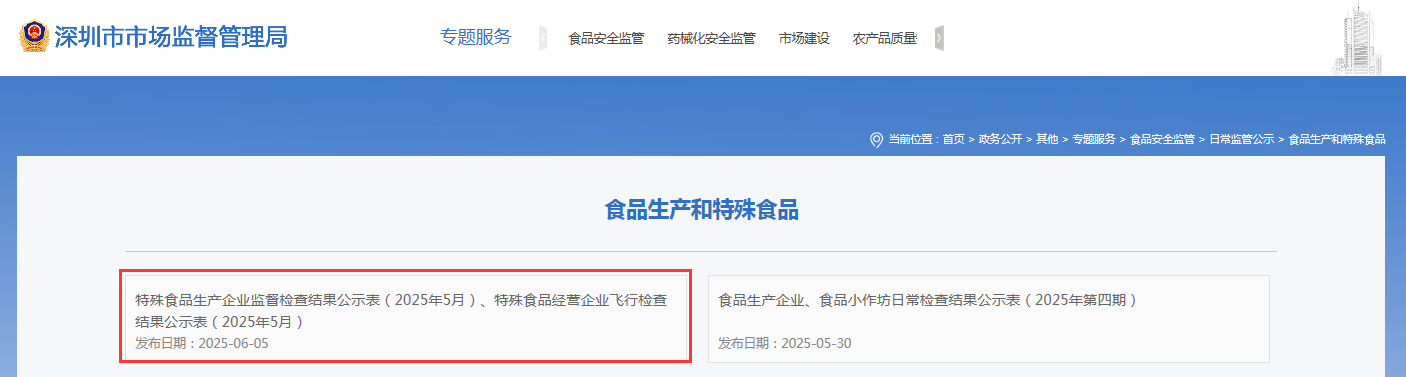 特殊食品生產(chǎn)企業(yè)監(jiān)督檢查結(jié)果公示表(2025年5月)
