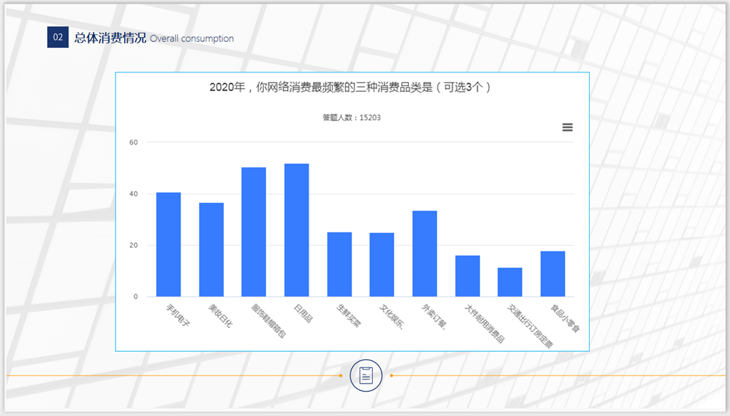 10大品類消費(fèi)頻率從高到低排序依次是:日用品、服飾鞋帽箱包、手機(jī)電子、美妝日化、外賣訂餐、生鮮買菜、文化娛樂,食品零食、大件商品、交通出行訂房訂餐。