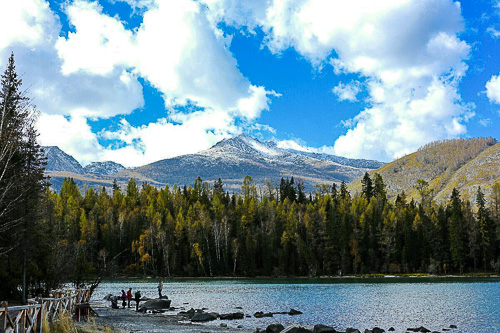 晨曦中走近喀納斯,最先映入眼簾的是湛藍天空下巍峨的雪山??汀⒂颜x峰等高山的冰川融水,養育著喀納斯。