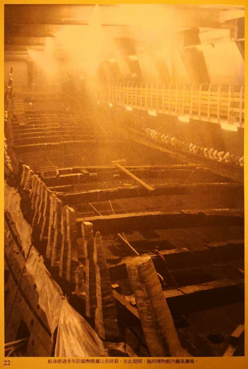 被水浸泡過的木頭,需用聚乙烯乙二醇和水的混合液,置換沉船木頭里的水份,以防止船體干燥破裂。每公斤干木頭中存留了1.5公斤的水份,其中1.35公斤需要置換出來。小件可以浸泡,船體只能噴灑。用500個噴嘴噴灑溶液,每隔20分鐘噴灑25分鐘,晝夜不停。噴灑工作從1962年開始,1979年停止。