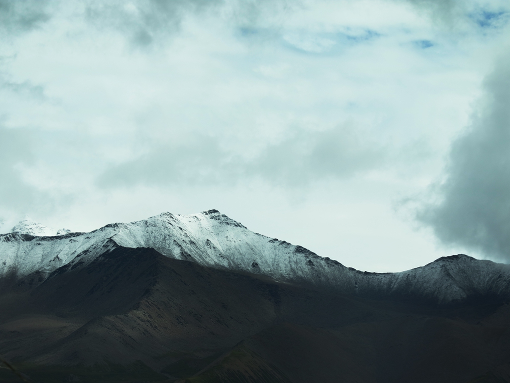 車行青海門源的柴達木盆地腹地,眺望崗什卡雪峰。