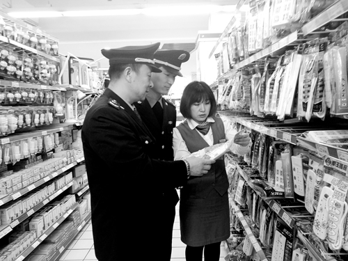 為有力打擊經銷假冒偽劣電器商品,確保電器產品質量安全,近日,山東省青島市市南區市場監督管理局中山路市場監管所開展了整治電器商品質量的專項行動。圖為執法人員在檢查商品的認證標識。