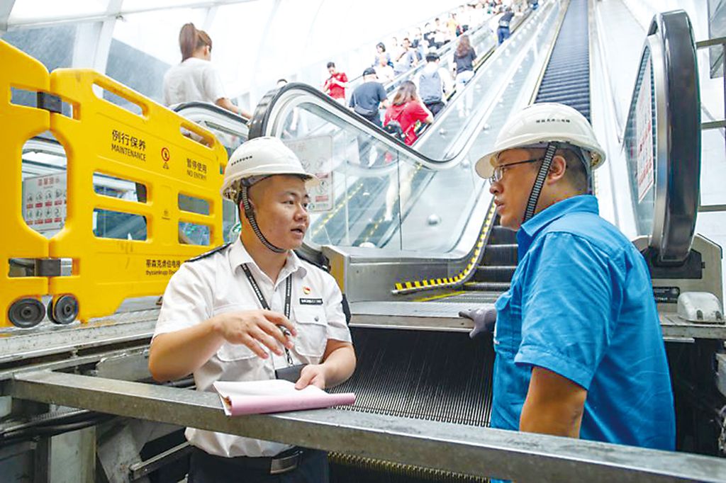 方燦宇(左)深入電梯事故現場調查研究