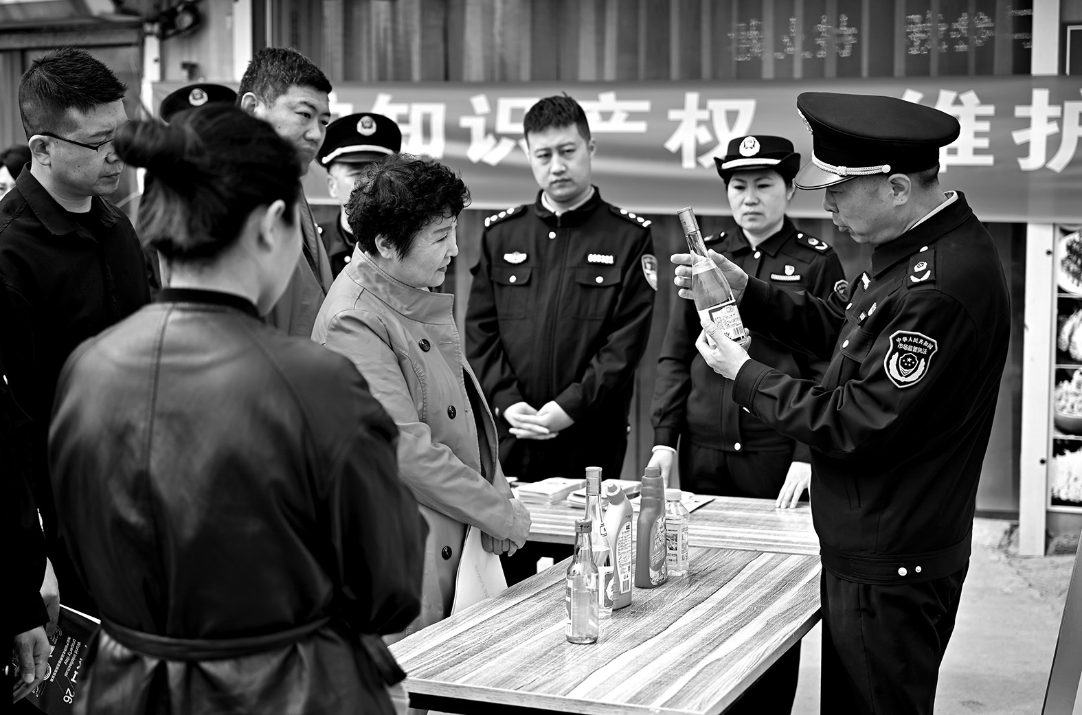 圖為該局工作人員向市民介紹如何通過商標辨別商品真偽的知識。