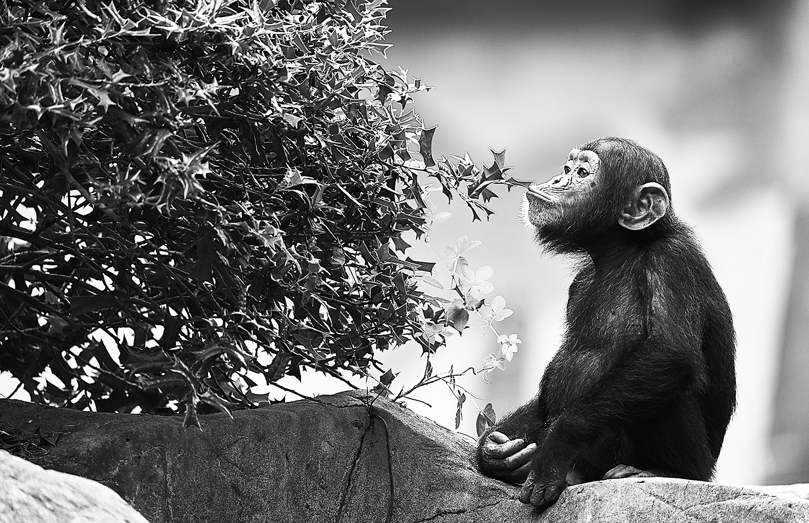 ▲3歲的黑猩猩樂芙獨(dú)自探索世界。