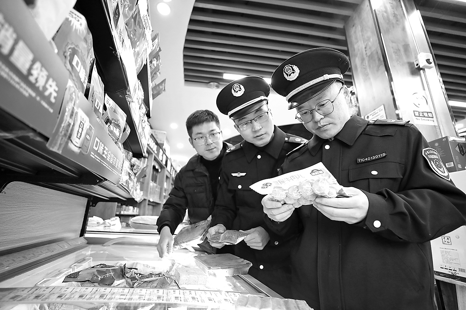 圖為該局執法人員在一家商超檢查食品標簽標識等信息。