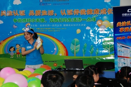 5月24日,中認網第一站走進東城區青年湖小學。在青年湖小學領導及老師的配合下,同學們排著隊有序入場,對座位上的認證認可宣傳冊饒有興趣。此次活動由中認網的主持人和低碳小天使一起帶領同學們學習玩具認證知識和低碳生活常識。為了活躍現場氣氛,提高學生掌握認證認可知識的效率,活動中穿插了互動游戲及知識搶答環節。本次活動的第一站在歡快的氣氛中結束。5月25日,中認網走進宣武區三教寺幼兒園進行了第二站共三場認證知識普及活動。活動在小朋友們的雀躍歡笑聲中開始,在游戲互動及知識問答環節過程中,小朋友們的高漲熱情將整個活動現場的氣氛推向了最高潮。