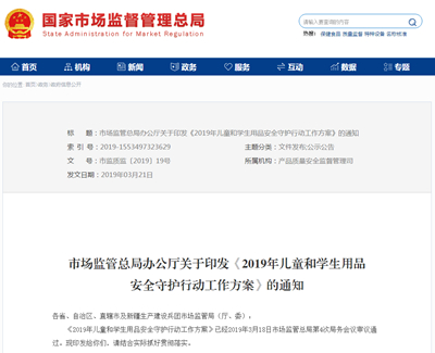 ??? 兒童和學生用品質(zhì)量安全關系青少年兒童的身心健康,關系家庭幸福、社會和諧。近年來,在各級市場監(jiān)管部門和社會各界的共同努力下,我國兒童和學生用品質(zhì)量安全形勢總體穩(wěn)中向好。但受經(jīng)濟社會發(fā)展不平衡、一些企業(yè)質(zhì)量安全意識和誠信意識薄弱等因素的影響,部分產(chǎn)品、部分領域質(zhì)量安全狀況仍面臨一些問題挑戰(zhàn),引起社會極大關注。為落實全國市場監(jiān)管工作會議要求,守護好兒童和學生用品質(zhì)量安全,制訂本工作方案。