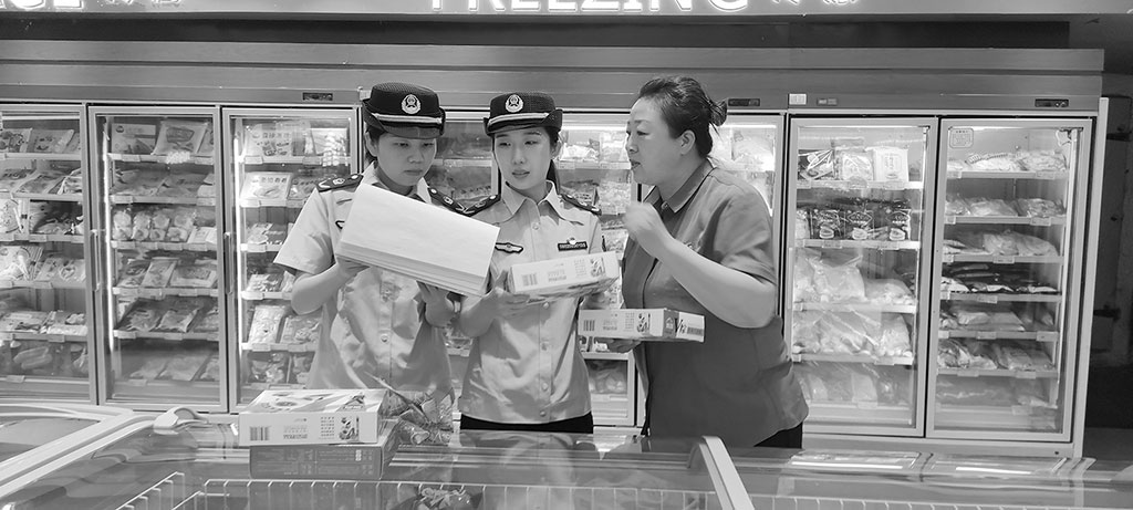 圖為6月15日該局執法人員在大型商超檢查節令食品。崔明太 攝