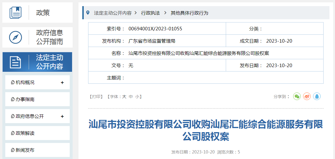 汕尾市投資控股有限公司收購汕尾匯能綜合能源服務有限公司股權案.docx