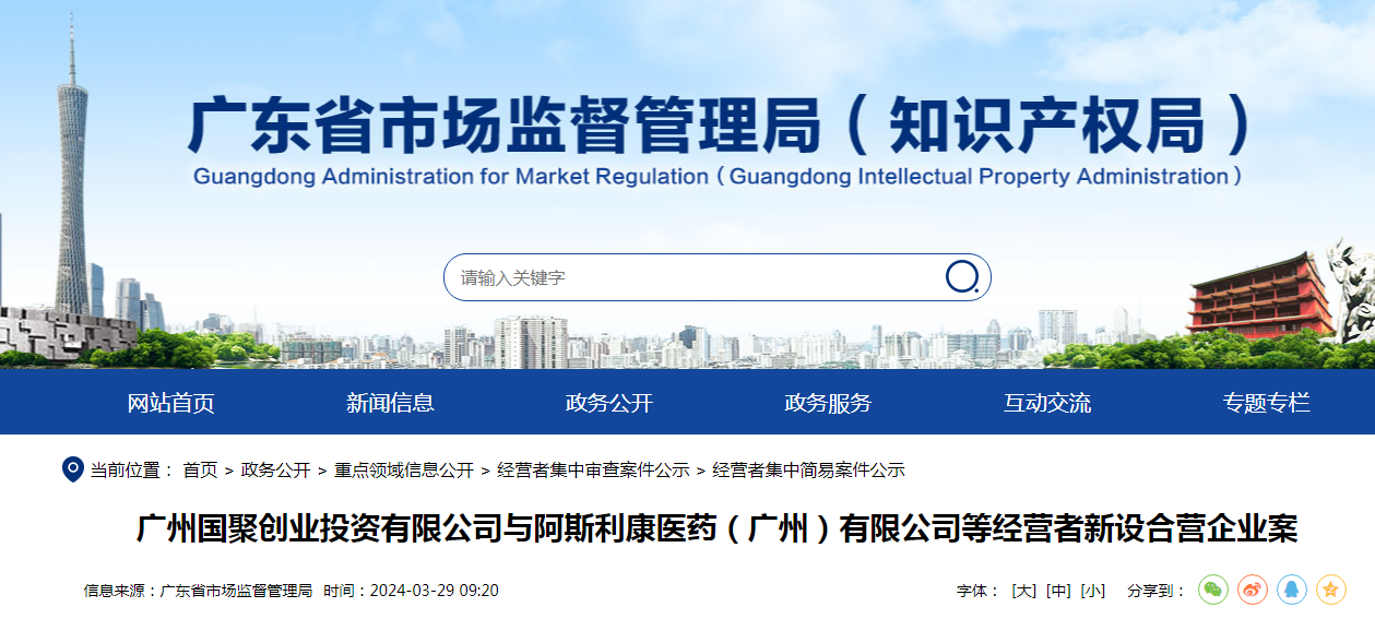 廣州國聚創業投資有限公司與阿斯利康醫藥(廣州)有限公司等經營者新設合營企業案.docx