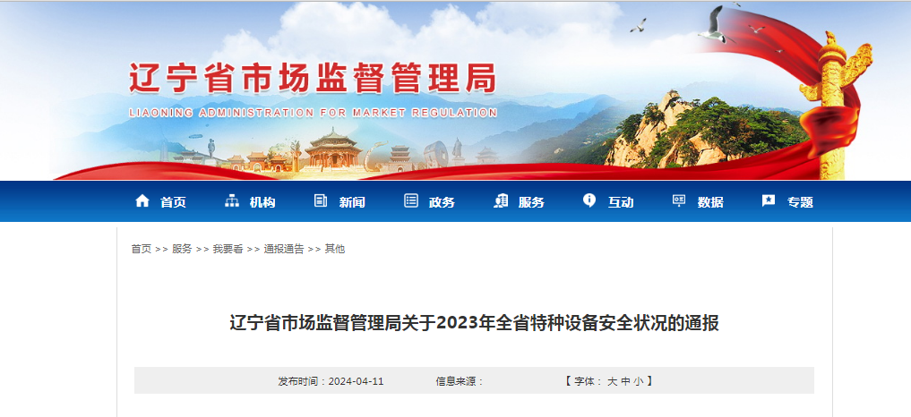 遼寧省市場監督管理局關于2023年全省特種設備安全狀況的通報