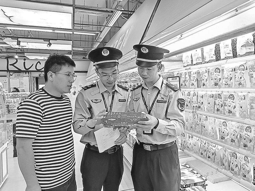 近日,江西省南豐縣市場監管局集中開展食品安全專項檢查,重點檢查經營者是否落實進貨查驗、索證索票等制度,是否履行價格承諾、做到明碼標價等。圖為該局執法人員在一家超市進行檢查。 鄢國卿 攝