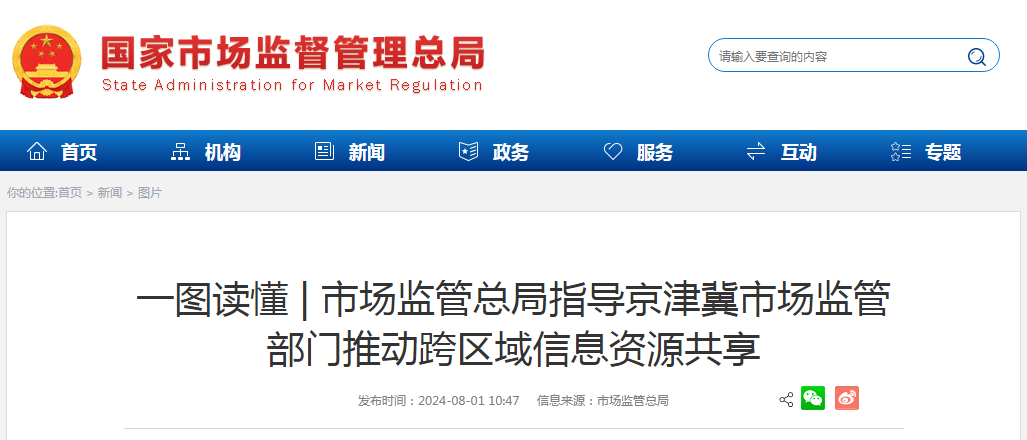 一圖讀懂 | 市場監管總局指導京津冀市場監管部門推動跨區域信息資源共享