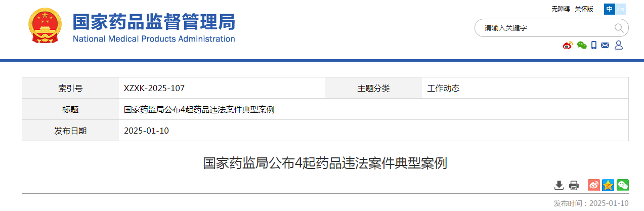 國家藥監局公布4起藥品違法案件典型案例