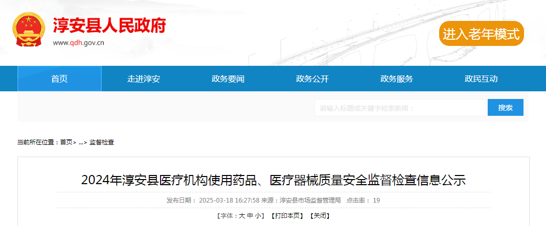 2024年淳安縣醫療機構使用藥品、醫療器械質量安全監督檢查信息公示