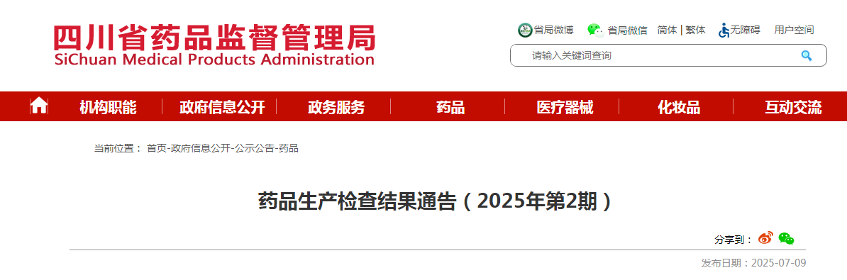 藥品生產(chǎn)檢查結(jié)果通告(2025年第2期)