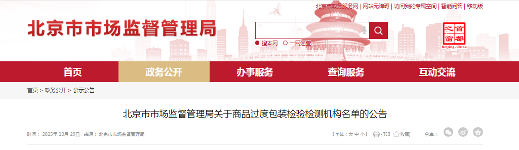 北京市市場監(jiān)督管理局關(guān)于商品過度包裝檢驗檢測機(jī)構(gòu)名單的公告