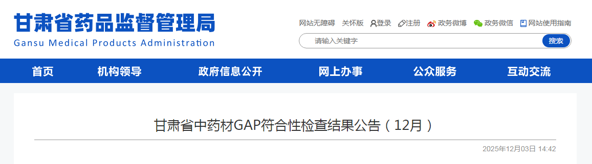甘肅省中藥材GAP符合性檢查結果公告(12月)