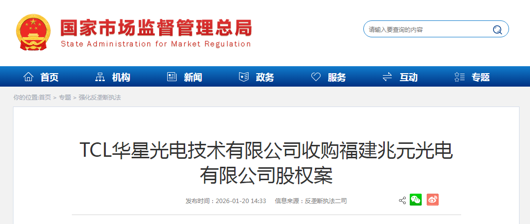 TCL華星光電技術(shù)有限公司收購福建兆元光電有限公司股權(quán)案